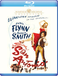 Warner Archive presents two goodies: 1945’s San Antonio, costarring Alexis Smith and directed by Raoul Walsh. Curtiz and Walsh were the two Flynn directors par excellence, steering Flynn through Westerns, period adventures, and World War II pictures. San Antonio actually features a character observing “There goes an empty horse,” which I always thought was a Curtiz line (if you know David Niven’s memoirs, you know). It’s easy to see why this was the most successful of Flynn’s 1940s pictures — it has beautiful Technicolor, it goes down super easy, Alexis Smith is a honey, etc. I’ve heard a story that on the set of The Age of Innocence Martin Scorsese was perturbed that Winona Ryder had never seen a movie featuring her costar Alexis, and that Scorsese arranged for the young ‘un to sit through a bunch of the legend’s pictures, and I hope this was one of them. It’s a honey.
